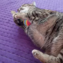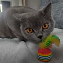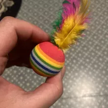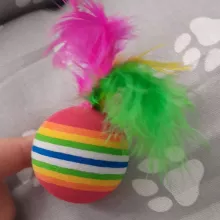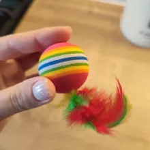 The moment I tossed them one of these rainbow feather balls, they were immediately captivated. It's been a joy to see them actively playing and engaging with their new toys - they're no longer just lounging around all day! The feathers add an extra element of fun as they flutter through the air, mimicking real prey.