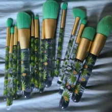 These brushes are a makeup enthusiast's dream! The soft, synthetic fibers glide effortlessly over my skin, blending foundation and eyeshadow to perfection. I've been using them daily since they arrived and have noticed how they don't shed like some other sets I've tried. Plus, the matte aluminum ferrules provide a firm grip that makes application even easier. Not only do these brushes work well but they're also gorgeous - the tropical print handles add such a fun touch to my vanity! And there's literally a brush for everything in this set - from contouring to highlighting to eyebrow shaping. They're easy to clean too which is an added bonus for me as someone who likes low-maintenance beauty tools.