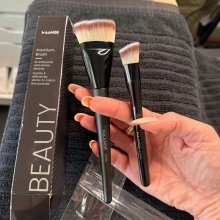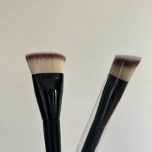 these two brushes have become indispensable tools in my makeup collection. the flat brush is perfect for applying foundation smoothly and evenly, providing full coverage without wasting product. it works beautifully with liquid and cream foundations, blending effortlessly into the skin for a flawless finish. the angled brush complements it perfectly by allowing me to sculpt and highlight my face with precision, especially around the eyes and cheekbones. both brushes feature densely packed synthetic bristles that feel soft against the skin yet firm enough to provide excellent control during application. cleaning is easy and they dry quickly without losing their shape. the handles are ergonomically designed for a comfortable grip, which helps me achieve precision with every use. this set delivers professional results and convenience without the need for multiple brushes. highly recommend for anyone wanting to streamline their routine while maintaining quality.
