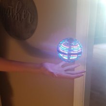 An 8-year-old and the adults at a Christmas gathering enjoyed the flying ball, especially the challenge of catching it. Its durability impressed them, along with its rechargeable feature, making it a hit.