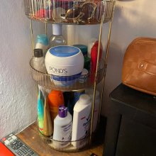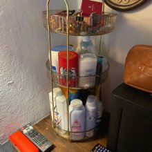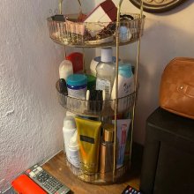 I use it to store all my perfumes. It's very sturdy, holds all my glass bottles well, and still spins easily. I got the amber colored one and it’s so adorable!