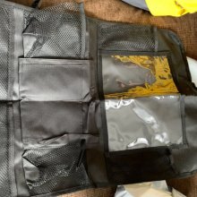 We installed these on the seat backs of our Ram Promaster swivel seats in our DIY campervan conversion. They work excellently, allowing us to keep essential items like flashlights, bug spray, sunscreen, wet wipes, hand sanitizer, and tools within easy reach. We couldn't be happier campers!