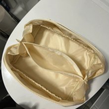 This makeup bag has a fantastic shape. It unzips to open flat, allowing you to see all your makeup items. The creamy white color looks very elegant. I gave it to my teenage granddaughter for Christmas, and she loves it.