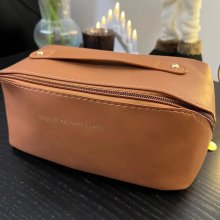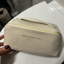 Ordered a cosmetic bag not for its intended purpose, but for a style. Yes, it would be possible to take it on a trip in a more convenient and compact form. The quality is not bad, the seams are even. Leather. The substitute is also not bad, about the inscription I am not sure that it will last long, but this is not so important. I recommend this budget cosmetic bag to everyone!