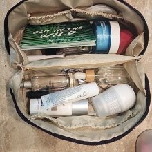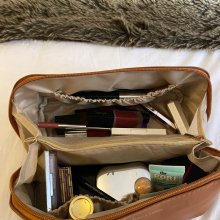 Totally thrilled with this toiletry bag. I knew I'd be tricked by how small and mighty this thing is, but was still shocked to discover it's replacing a bag at least three times bigger and with room to spare. We are constantly on the road, and knowing my stuff is organized, clean, and fits in a bag that saves me even more room for clothes and other travel necessities is a big win. Design on this bag is very beautiful