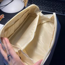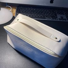 My very first bag from a different company tho it was cheaper didn't have as much strapped compartments as these & was one inch smaller. & tho I enjoyed the quality as far as its standout texture and color option of that other company. However, when I saw that this had a clear pouch where you could see the products, I decided to go with this company. Even though they did not have my beige textured one I really enjoyed, I compromised by ordering the plain beige. Now I travel with my makeup everywhere and I want to be able to have a bag that could take a beating. So I figured that may be going with the texture design because it can hide its noticeably lost of it shape easily 🤞🏽.