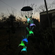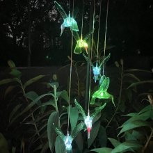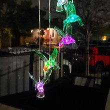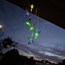 I was unsure about buying this since I'm not a big fan of wind chimes and I love hummingbirds. But I ended up liking these a lot. I put them outside to charge during the day and bring them inside at night. They hang on my dining room chandelier, as it's winter and I'm not outside at night. I wasn't keen on morphing lights before, but I like them on these hummingbirds and might buy another set. I'm very satisfied with this purchase.