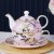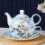 European Bone China Tea and Coffee Cup Set with Teapot – Painted Flowers & Birds