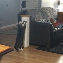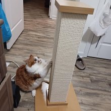 My cat loves this tall scratching post, perfect for her ability to reach up to 41 inches. It's worth every penny.