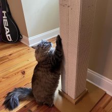 The height of this post is perfect for any cat, even large breeds like Maine Coons, to fully stretch while scratching. It's very stable standing upright, and you can also lay it horizontally for climbing.