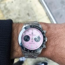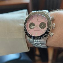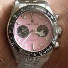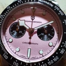 this watch is everything I wanted and more. it's so stylish with its panda dial and luminous hands, perfect for night time use. not to mention it’s waterproof too – no worries about getting caught in the rain anymore.