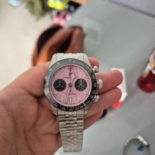 This piece exudes sophistication with its elegant design featuring a charming panda dial. Its chronograph functionality works like a charm while ensuring precise timing at all times - day or night due to luminescent features. Moreover, being water-resistant gives me confidence throughout any activity without worrying about damage.