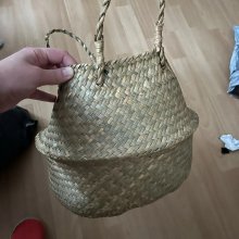 Very beautiful basket-fits perfectly into the design. Made very well! Comes very crumpled-but it is enough just to wet it and leave it to dry in the sun-it itself will take the desired shape. The color gives a little to the swamp green. Recommend⭐️⭐️⭐️⭐️⭐️