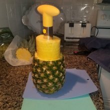Just received my pineapple peeler and corer yesterday and couldn't wait to try it out. I bought a pineapple today and was amazed at how smoothly it worked. Once I aligned it with the core and applied a bit of pressure to start, the rest was effortless. I could turn it with just my fingers without needing to push down further. When I reached the bottom, lifting the tool with the pineapple rounds attached was simple, and I could easily push down on the cutter to segment them into smaller pieces. Remember to measure the pineapple against the tool before cutting to avoid any mishaps. Cleaning was a snap too – a little soap and water and it was done. This tool has revolutionized my pineapple preparation, making it so much quicker and easier than the traditional method of peeling, coring, slicing, and dicing by hand. Definitely worth the investment, even for the occasional pineapple eater