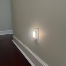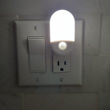 This smart night light is great. It can detect movement and knows when there's already enough light in the room, like during the day. It looks simple and nice. I wish I had a plug in my stairwell to use one there too.