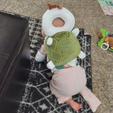 The product is impressively sturdy, plush, and securely attaches as a backpack. My son is currently working on standing and has fallen back a couple of times, but thanks to his turtle shell, he hasn't suffered any head injuries. I strongly recommend buying it for the peace of mind it offers in preventing head injuries.