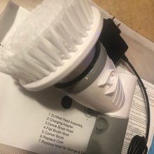Using this product on hard water stains on my shower door was really effective. The USB charger is convenient, eliminating the need for constant battery replacement. The various brush attachments are useful for cleaning different surfaces like tile floors. It even includes a bag for easy storage.