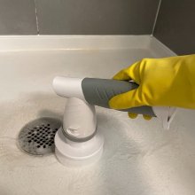 As someone with carpal tunnel and neck pain, cleaning the shower was always a dreaded task, but not anymore with this tool. It's easy to use and comes with all the necessary attachments for awkward spaces. It even easily cleans up bath crayons used by my son. My shower and tub look amazing, and my body is grateful for this purchase. I won't clean my bathroom without it again.