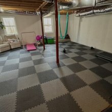 We discovered this mat for our basement, where we intended to cover the old concrete flooring. The material is durable and easily fits together. We were able to cut it effortlessly to cover the entire floor from wall to wall. It's comfortable enough to be used without shoes, and cleaning it is a breeze with our Dyson vacuum and Swiffer Wet Jet.